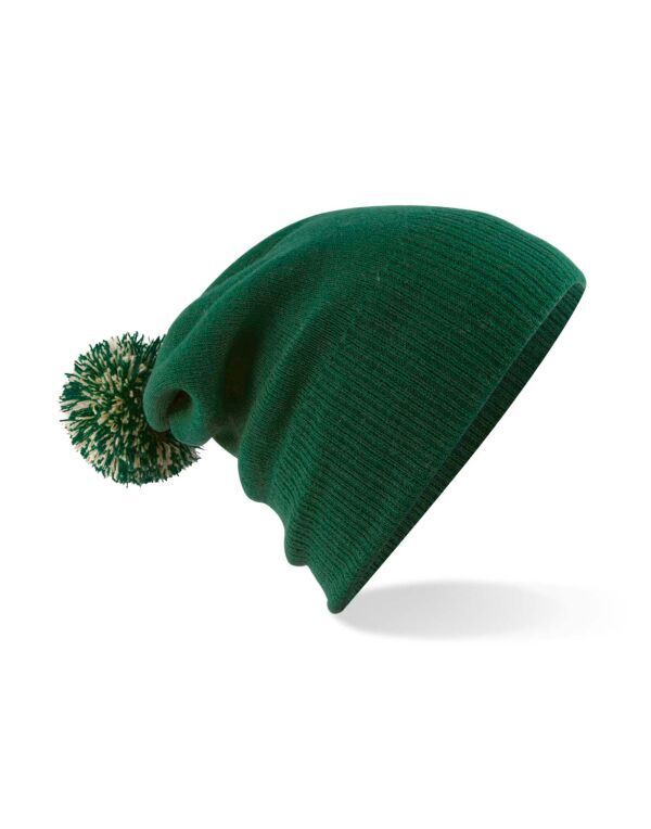 Bobble beanie in dark green/ off white with club badge embroidered.
